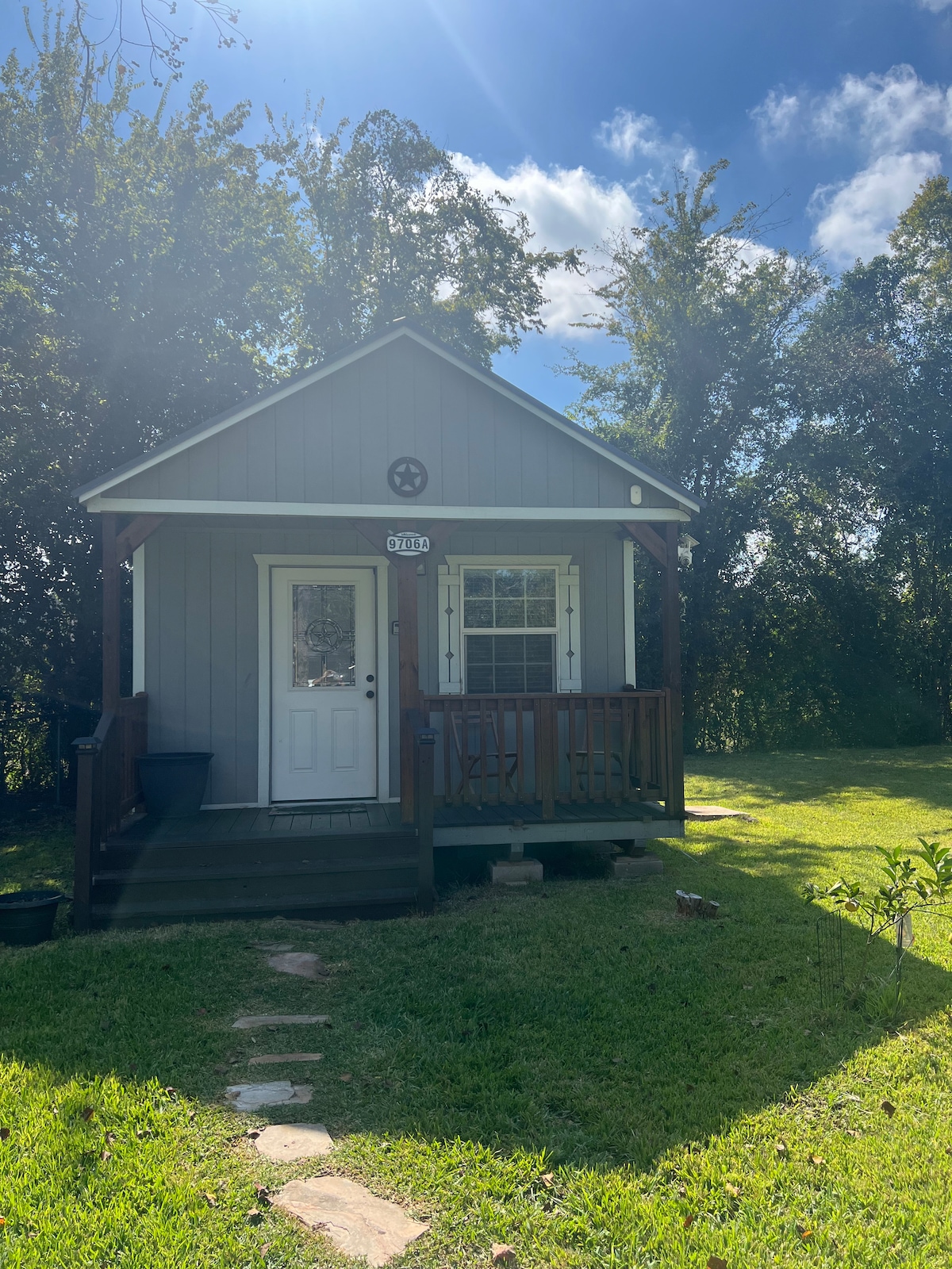 The Barracks @ Cedar Oaks Inn Step into history with this restored 1917 Ellington Air Force base cabin. Filled with antiques and original art, it blends timeless charm with comfort. Enjoy the back courtyard with outdoor kitchen, fireplace, water feature, and a unique garden bath featuring side-by-side clawfoot tubs and an open-air shower. Sip coffee or wine on the front porch while watching the chickens. Dog-friendly (30 lbs or less), this retreat is as quirky as it is relaxing.