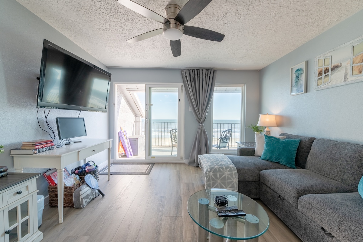 This newly renovated Beach front condo is the perfect place for your friends and family to stay in Galveston. The unobstructed view of the ocean from your private top floor balcony is breathtaking. The interior is modern, spacious and full of natural light. Intentional design, new renovations and simple pops of color make this space calming, clean and inviting. You cannot beat this location in regards to proximity of attractions and just a walk across the street to the beach!