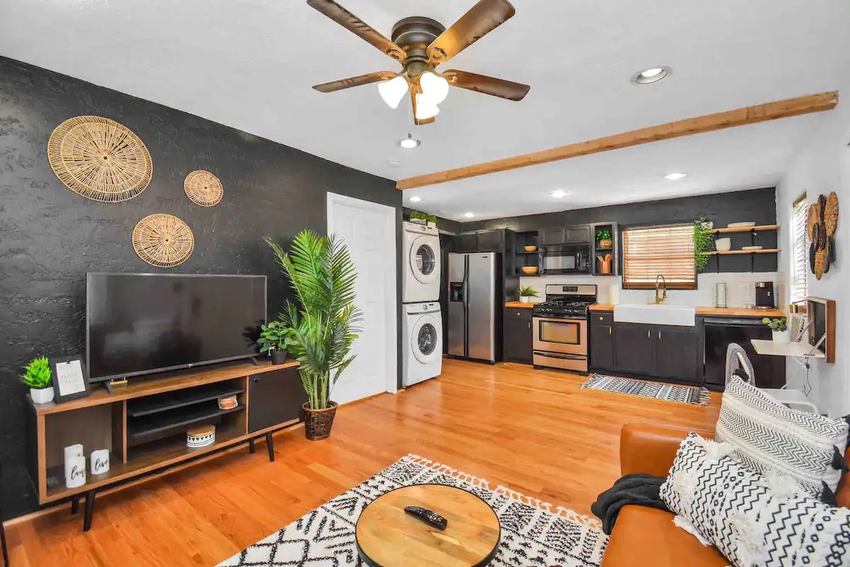 Private, serene & clean guesthouse w/everything you need in a spacious, uncluttered 700 sq ft. • Cleaned by your SuperHost • Fast Wi‑Fi (532 Mbps) • In‑unit washer/dryer • Workspace • Full kitchen w/essentials • Excellent AC/Heat • Cozy couch & recliner • 55" Smart TV with Hulu & Disney+ included • Private bathroom & shower stocked with essentials • Outdoor lighted gardens w/ soothing water features Completely Detached from Main House Modern recessed LED lighting Midway Houston/Galveston
