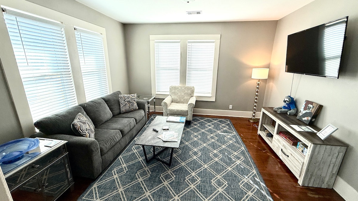This is 1 of 4 Victorian era flats in this house with natural light, huge windows, high ceilings, & great architectural detail. Queen sz bed in bedroom. Living room with sofa & chairs. Kitchen with electric oven/range, microwave, Keurig, cookware, dishes, flatware. Linens, towels, & bath items provided. A balcony overlooking the Lost Bayou District, is a great place for morning coffee or an afternoon cocktail. Walkable neighborhood. Parking in front on the street & a small spot under the oak.