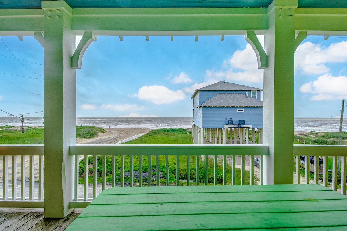 Come away to this amazing beach house in Crystal Beach with water views and walking distance to the beach. Outside, the property is all about lounging and entertainment, with a fire pit, hammocks, shady porches, sweeping balconies, a weber grill, and a ping pong table. Inside, you'll find 4 gorgeous bedrooms with a bonus kid-friendly sleeping nook, a spacious living area with fire place, and a well-stocked kitchen, perfect for families, friends, or couples. 5 min walk to the Beach