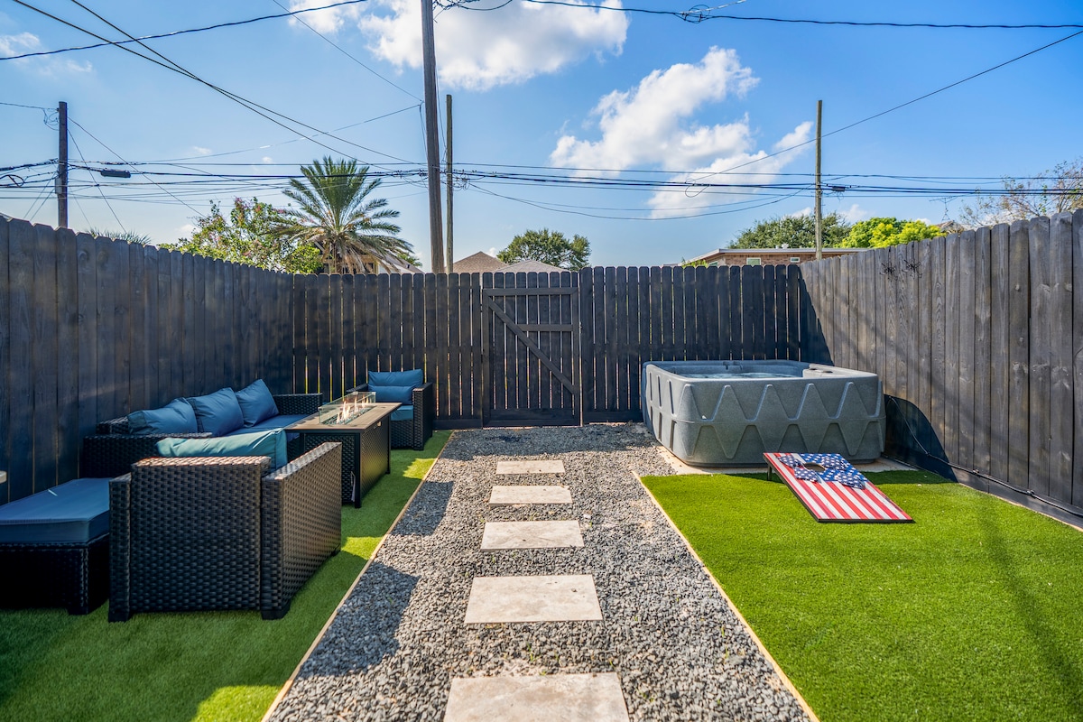 AS SEEN ON TV. Find this gem on Restoring Galveston. Newly renovated 927 square foot home nestled amongst the mature trees in Galveston's Midtown. When you enter this historic beach cottage you will immediately feel at home and relaxed. 50" TV in the living room and 43" TV's in the bedrooms offering Netflix, Youtube TV and Disney+. So many extras including a cowboy pool, life size chess set, fire pit, beach chairs, umbrella, heated toilet seats and off street parking just to name a few.