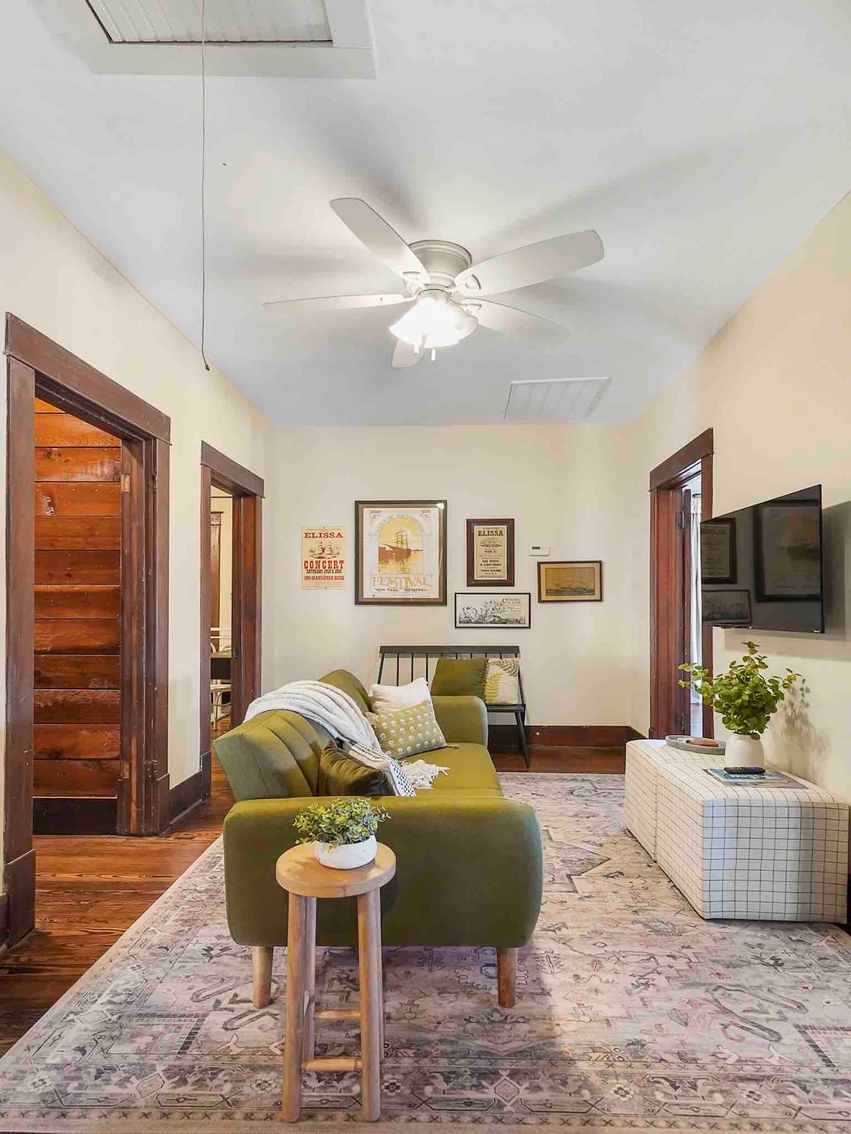 Old Corner grocery store renovated into Cordray Drug Store on show "Restoring Galveston" on Magnolia. This rental space UPSTAIRS is completely separate with its own entrance. Bedroom has queen bed. Kitchen is fully equipped for cooking. Keurig with coffee, creamer and sugar provided. Living room has Smart TV. Washer and dryer! Outdoor space is shared during 12-6 business hours. Expect noise downstairs during shop hours 12-6 pm Tuesday-Sunday.