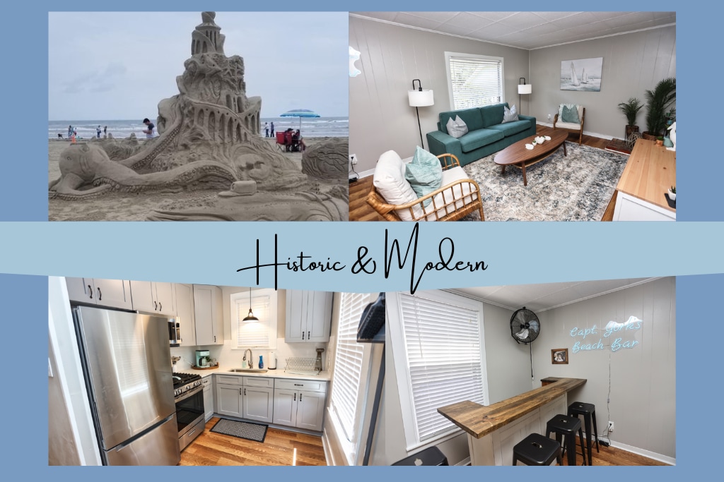 Location, View, Parking! Just steps from the beach with a view! Welcome to The Shucked Oyster where the beach is less than 500ft from your bed, The Strand is 1.4 miles, and the Pleasure Pier is 1.3 miles. Private and peaceful apartment provides the perfect home base for all historic, beautiful Galveston Island has to offer! Located close to new Hotel Lucine! *Not pet-friendly* *Street parking - 1 car* *Window units for AC* *Stairs required* *All available amenities are listed* *4 guests MAX*