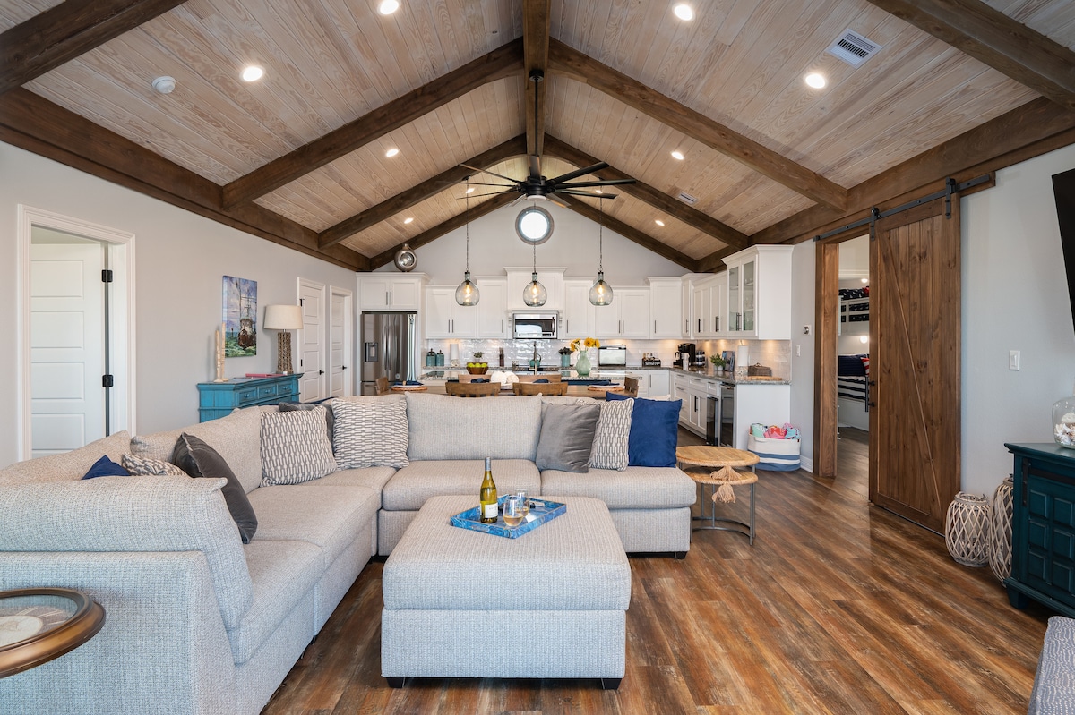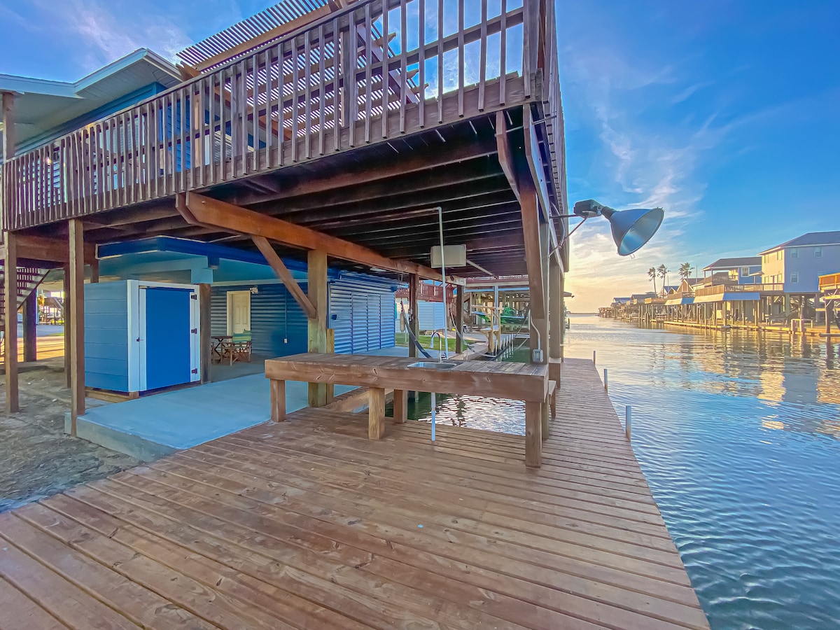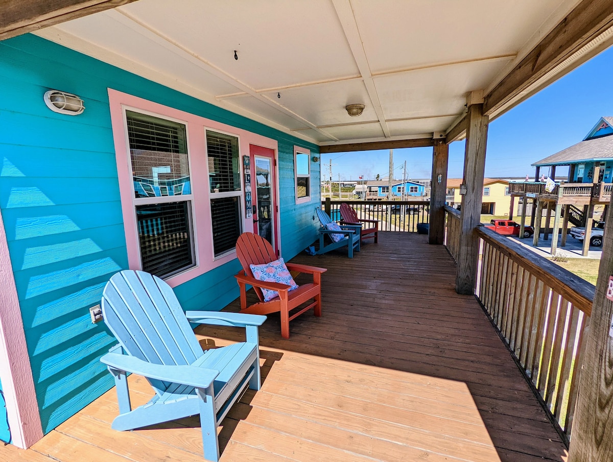 Enjoy the ocean waves and make forever memories at our nautical home. Featuring 3 bedrooms that sleep 12 and 2 bathrooms. Whether you’re soaking up some rays on the spacious upper deck or playing outdoor games and enjoying beverages at our Tiki Bar, you are sure to have a grand time here at Rockin V by the Sea. With a short walk or drive to the beach, easy access to local hot spots or a ferry ride to Galveston, enjoy the peaceful neighborhood of Sandy Shores as your home away from home.