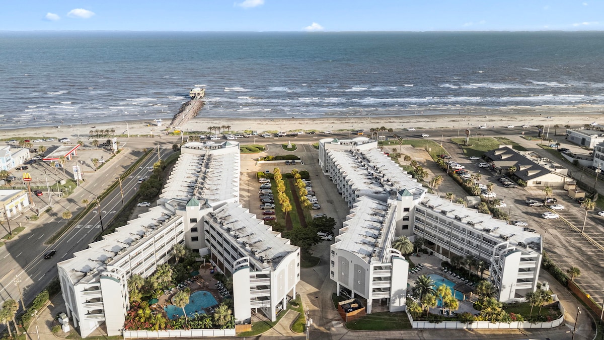 Beautifully remodeled suite. Gulf and Sunset View. Welcome to amazing Galveston & our very special Condo We have remodeled & designed this space especially to ensure your comfort, relaxation & fun Located on the Seawall directly across from Babe's Beach 🏖 Our gated secure complex includes 2 pools, hot tubs, tennis court, fitness center, garden, BBQs, WIFI & more.