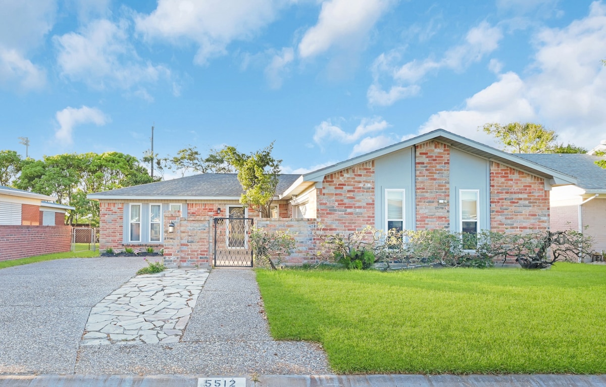 This is THE place for your entire group of family or friends! Stella’s Getaway is only a 7 minute walk to the beach. Find 3 large bedrooms, 2 living room sets, and a covered patio with a hammock, BBQ grill and cafe lights. Our place is fully equipped with smart TV’s, a coffee bar and a full kitchen along with a washer and dryer. Make your Galveston trip the most memorable at Stella’s Getaway!