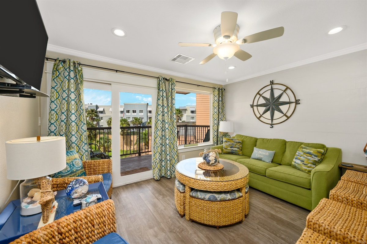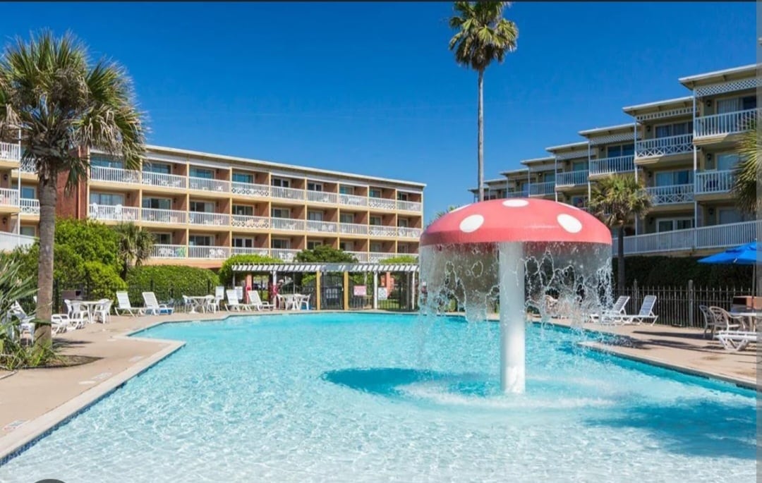 Sip your coffee in the morning or your favorite beverage in the evening on this gulf-facing patio and enjoy beautiful beach views! When you stay at our centrally located condo, your family will be close to everything. Captain's Cove is directly on Seawall Blvd and across from Babe's Beach. This condo community offers a large swimming pool in front of the property, so guests can swim while enjoying Gulf views across the Seawall.