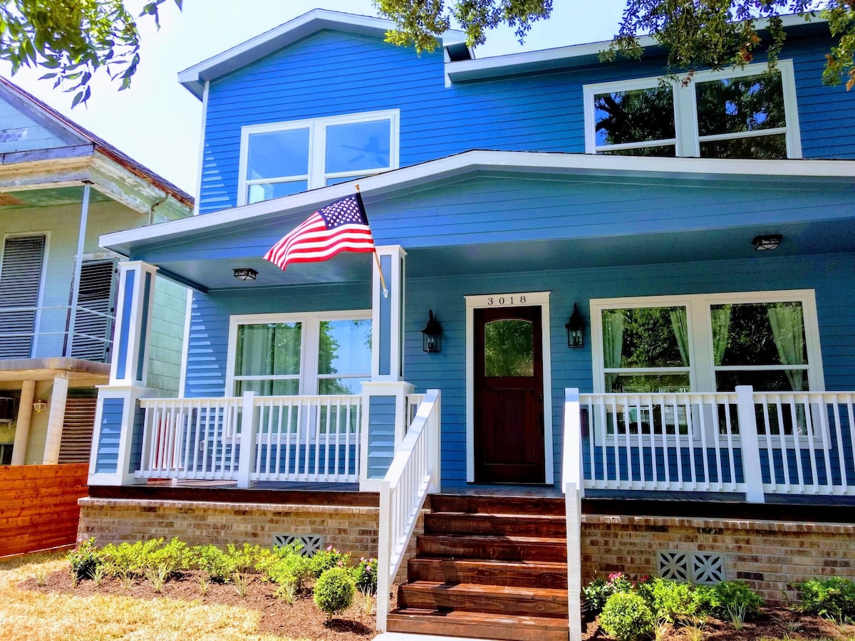 Welcome to your Galveston vacation! Seahorse Inn is a newly renovated home built in 1914! Only 2 blocks away from the Beach and Pleasure Pier! We are located in the Silk Stocking district of Galveston an area known for amazing architecture and part of the Historic Mardi Gras parade route. Open concept living/kitchen area with brand new appliances and furniture! Fully stocked kitchen, big backyard for your dog and pets, BBQ+Fire Pit, Fast Wifi, walking distance to beach and restaurants!