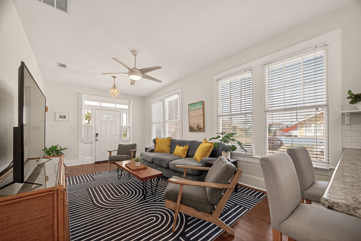 Come stay with us at our modern and upscale Airbnb. Every aspect of our place has been furnished only with the finest quality that we would stay in ourselves. -Upstairs unit only 1 queen bed The location is in an upscale neighborhood that is only a 3min drive or a 10min walk to the beach. Also a 5min drive to many popular local restaurants on 61st. As well as a 1min drive to Moody Gardens and Schliterbahn! *Downstairs is a separate Airbnb unit*