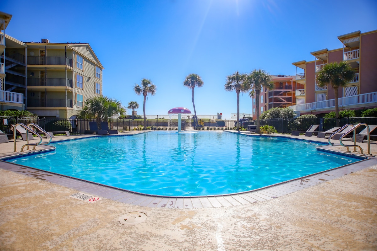 Sip your coffee in the morning or your favorite beverage in the evening on this gulf-facing patio and enjoy beautiful beach views! When you stay at our centrally located condo, your family will be close to everything. Captain's Cove is directly on Seawall Blvd and across from Babe's Beach. This condo community offers a large swimming pool in front of the property, so guests can swim while enjoying Gulf views across the Seawall.