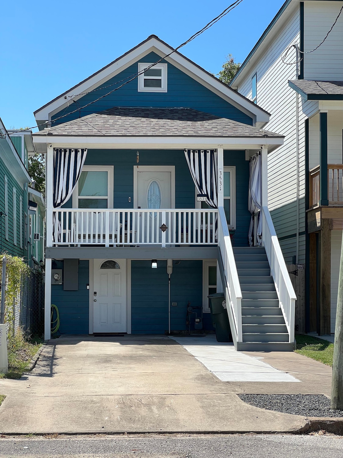 Hasta La Vista! Kick back and relax in this calm, stylish beachside home. Sit out on the deck with your coffee and listen to the songs of the shorebirds and soothing lull of the ocean. Grill up some good times on ground level. Have a delicious cocktail on the patio while playing cornhole. Make sweet s'mores at the fire pit. Take a quick 3-5 minute 1-block walk to the beach without having to dodge traffic or cross a major street. Enjoy all the history and charm of Galveston Island!