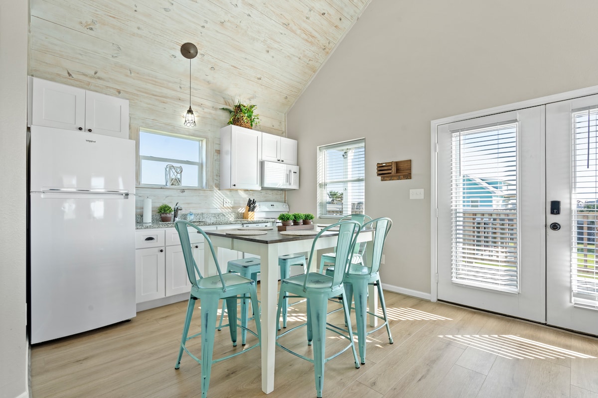 Experience true hospitality at my English style Cottage by the Sea. The space feels like a cozy suite in an upscale hotel . Inside you will enjoy a comfortable cottage vibe , King size bed with luxury linens , fully equipped kitchenette and quaint dining area , tub and shower combo in the bathroom . Enjoy warm gulf breezes from the private patio. Our specialty is to provide an intimate space for you to create beautiful memories. Minutes from beach 🏖️ and all Galveston has to offer.