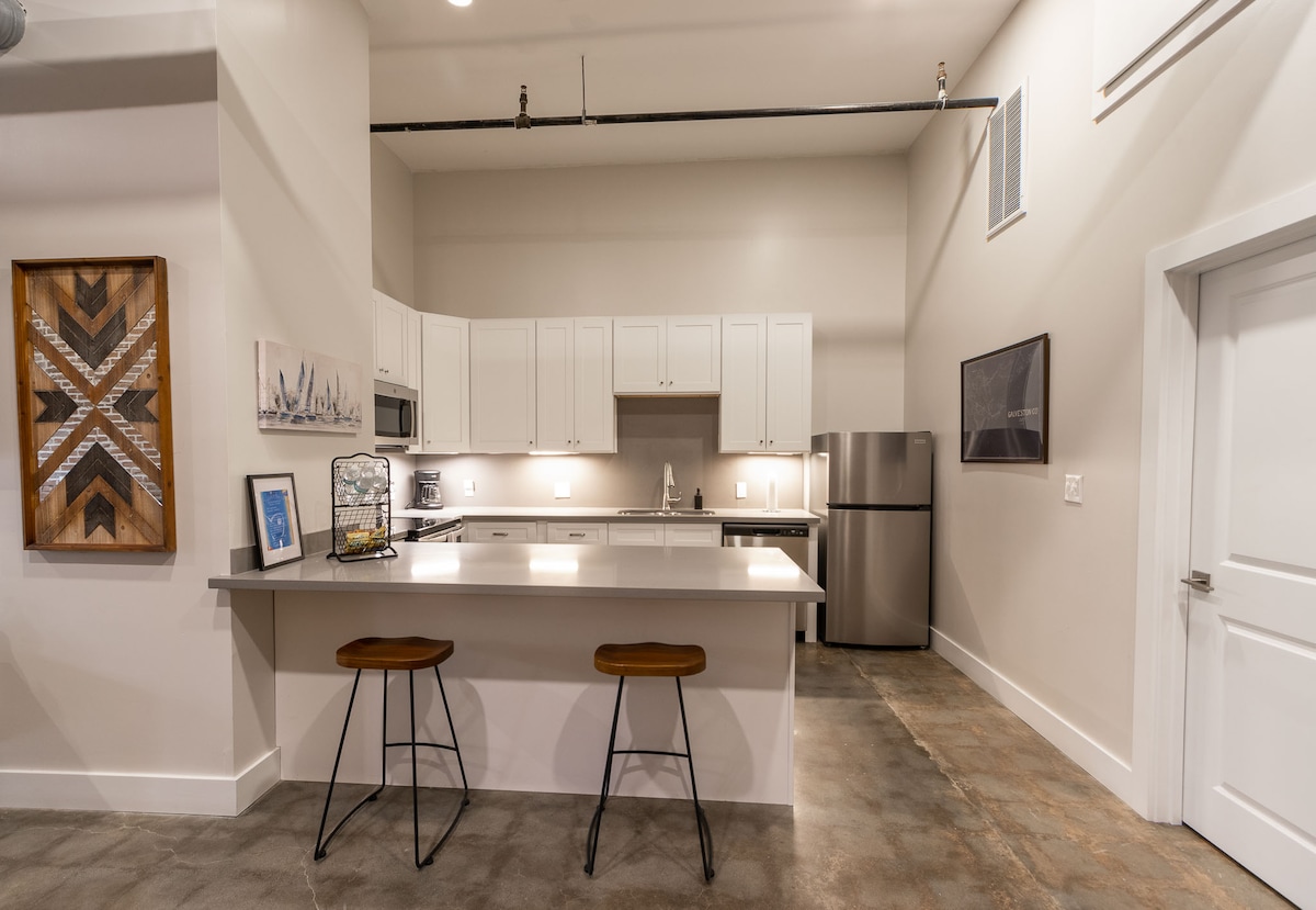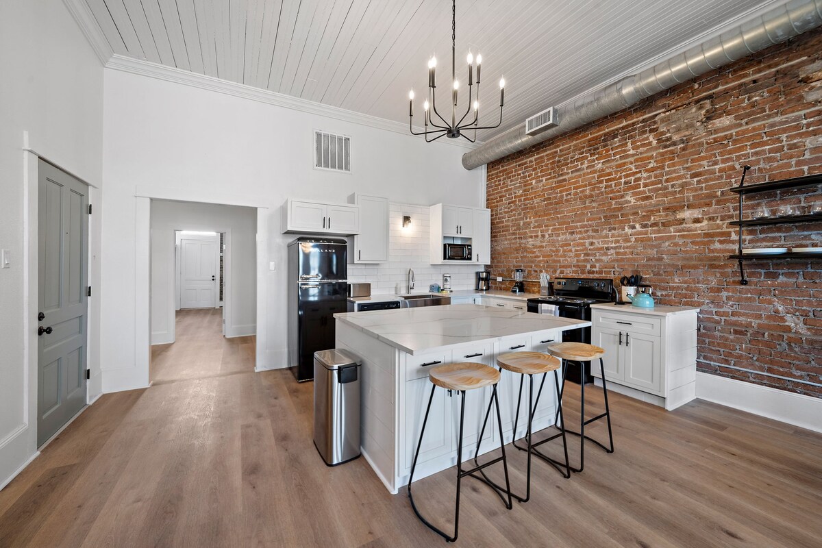 Welcome to Market Street Loft D– a stunning, spacious historic loft in the heart of downtown Galveston. Enjoy high lofted ceilings, oversized windows with views and a beautifully updated kitchen. The king size bed in the primary bedroom plus the full over full bunk bed nestled off the main living space comfortably sleeps up to 6 people. Whether you’re looking to spend time on The Strand, the beach, or a quick overnight before a cruise departure, this loft is the perfect home base for your trip.