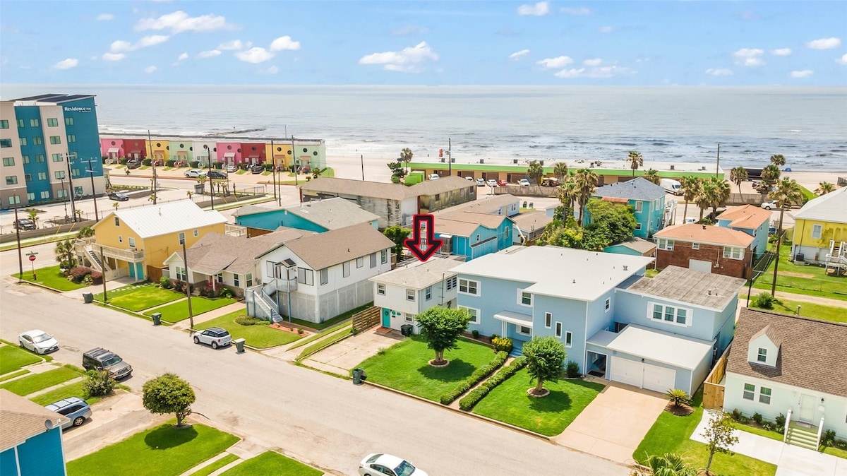 Prime Location Beautifully renovated and thoughtfully designed beach retreat, blending modern luxury with extra amenities. Walk to the famous Strand for dining, shopping, art, and nightlife. Just steps from Stewart & Porretto beaches, cruises, and UTMB. Minutes by car to Pleasure Pier, Moody Gardens, Schlitterbahn, and the Seawall. Historic charm meets comfort with 2 beds, 2 baths and a queen sofa bed. King bed in the primary suite. Ideal for families, couples, or solo adventurers.