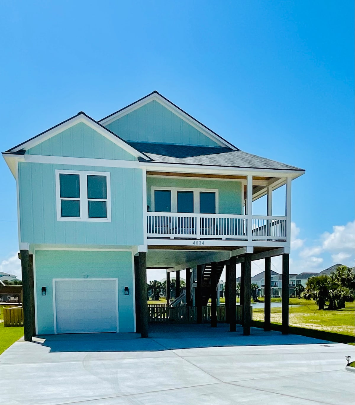 Enjoy a romantic weekend getaway at this cozy couple's retreat. • It sits in close proximity to the beach and the Galveston Country Club golf course. • Situated next to a lake with beautiful views from the living room and the deck, where you can enjoy peaceful moments together. • The canopy of trees and lights in the backyard make it the perfect place for grilling or hanging out in the evenings. • Every detail throughout this home was well thought out & creates the perfect retreat.