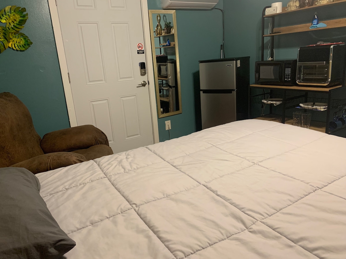 This centrally located studio apartment is just a few minutes drive to all of Galveston's major attractions. The apartment has been updated with new flooring, paint, furnishings, cold AC, etc. It is located behind the main house in a separate building with a private entrance and a parking area for use by guests. Guests have access to the backyard of the main home. No loud behavior out of consideration for neighbors. Several convenience stores within walking distance. 0.6 miles to beach.