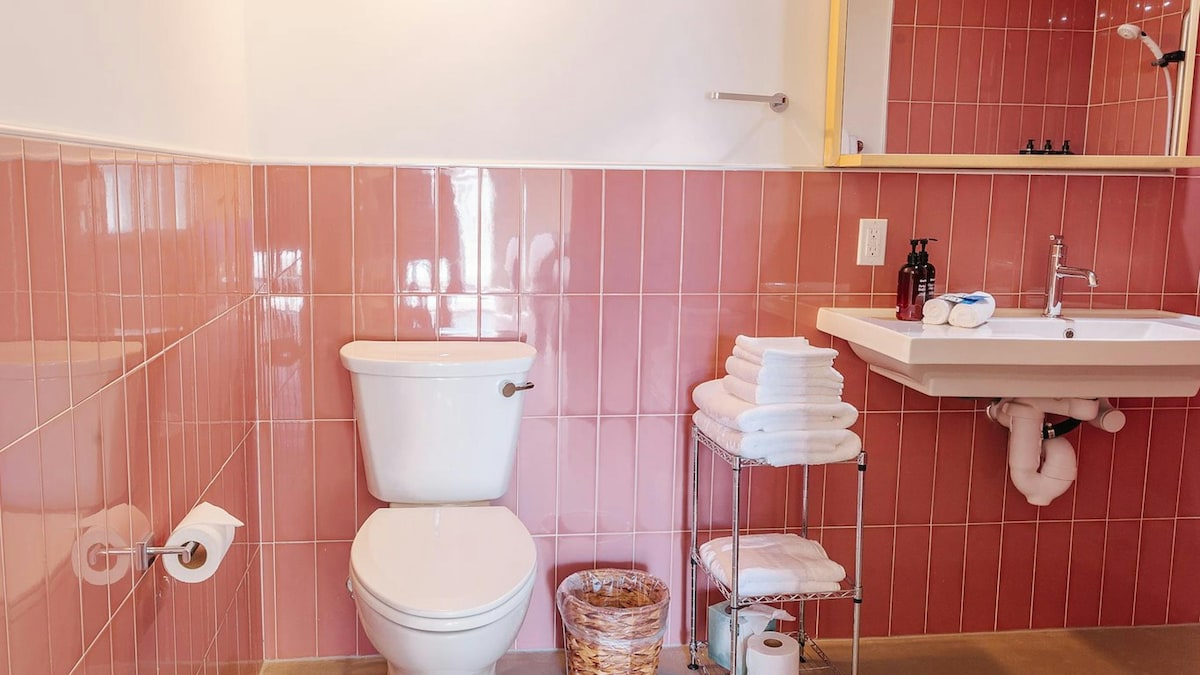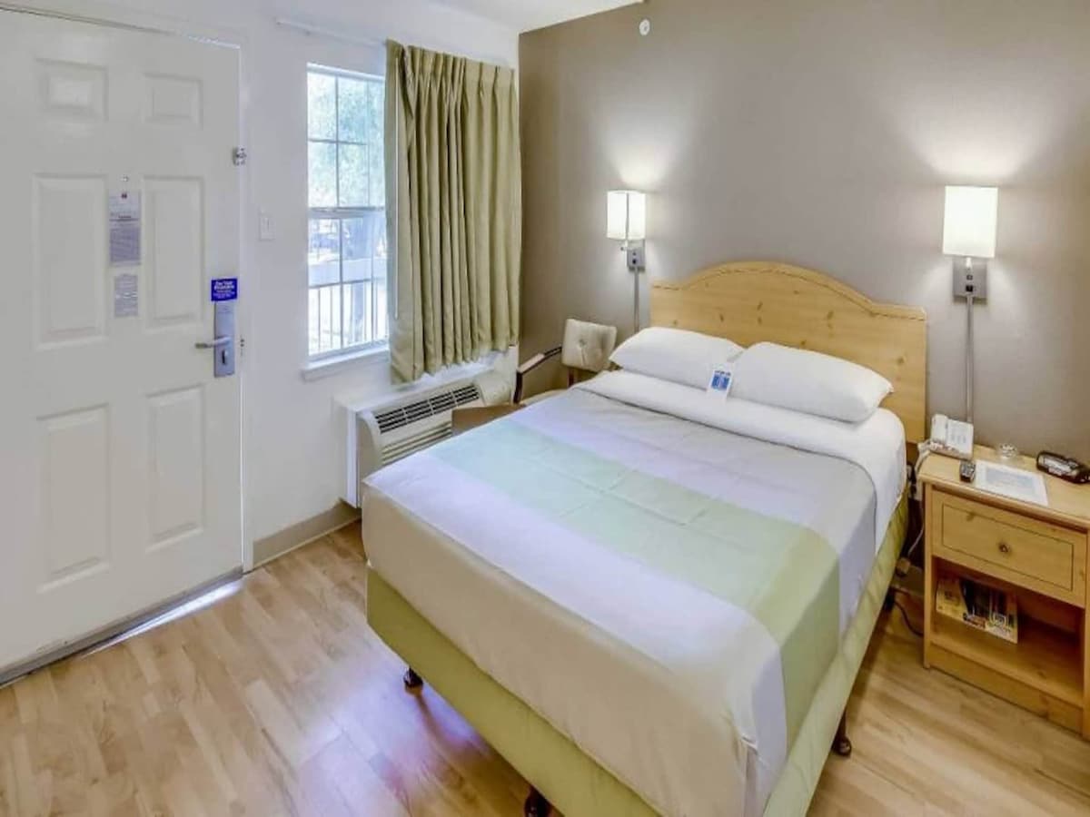 First Floor Suite Includes : Queen Bed, 55'' smart tv (Roku tv included for some movies. Log into any other apps you have), Coffee Nook Bathroom with shower (no bath) Rooms sleep 2 persons max. Minimum age to book and lodge at hotel is 25 years. No persons under 25 to be on the property. This is a non smoking, Adults only, No pets establishment. ONE off street gated parking spot Hotel Amenities Include - Parking for 1 car/room, heated pool, gym, public lounge area, and small boutique