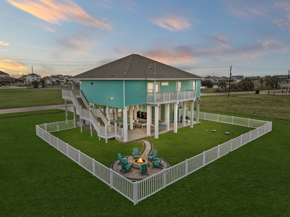 Relax with the whole family at our sturdy & newly renovated beach home, located steps away from the beach. Our large home is situated on an expansive corner lot & features beach and bay views. Enjoy listening to the ocean waves & stunning sunsets while you sip coffee or wine from our oversized deck. Enjoy s’mores from our outdoor fire pit. Our home is not a typical Galveston AirBNB as it is our family’s vacation home and very well maintained.