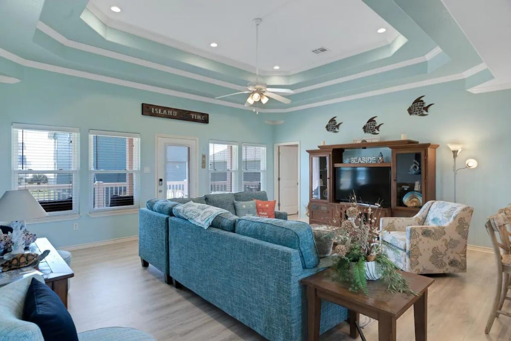 Welcome to Beach Soulcation! — your ultimate getaway just 3 minutes from the sand and surf! Relax with ocean views from the deck, splash in the seasonal community pool, and unwind in a coastal retreat designed for family and friends to connect. 📍 Walk to the beach + gulf views from upper deck ⚓️ Boat launch access + fishing dock 🔥 Patio lounge area with fire pit + BBQ grill 🎲 Variety of fun games for all ages 📶 WiFi + TVs in every room 🛏️ 4 bedrooms across two levels, ideal for groups