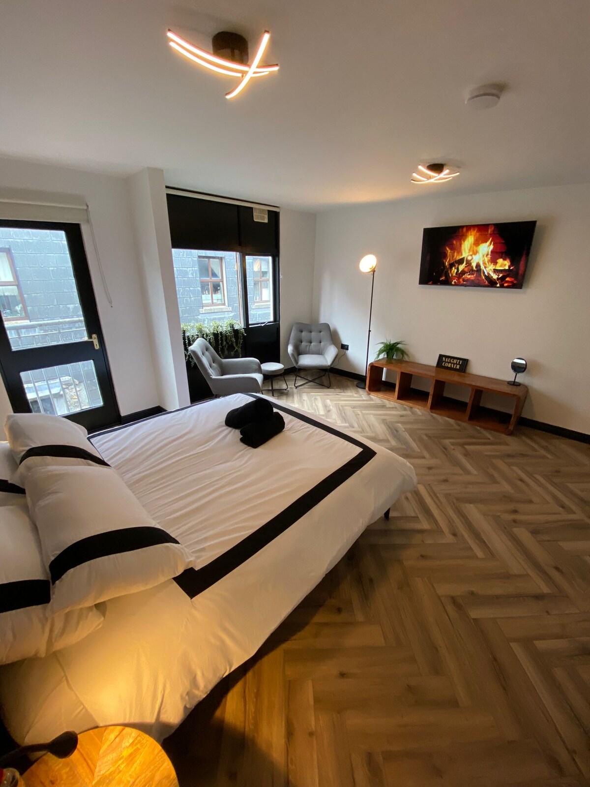 Stylish and bright one bedroom apartment decorated to a high standard located in the heart of the Galway's West End with some of the best restaurants, bars and cafes in the city and just a 5 minute walk to Quay Street and Shop Street. High speed wifi, 43" smart TV, fully equipped modern kitchen with dishwasher, bright spacious sitting room with a large comfortable sofa, cosy king size bed, walk in wardrobe and modern bathroom with silent shower.