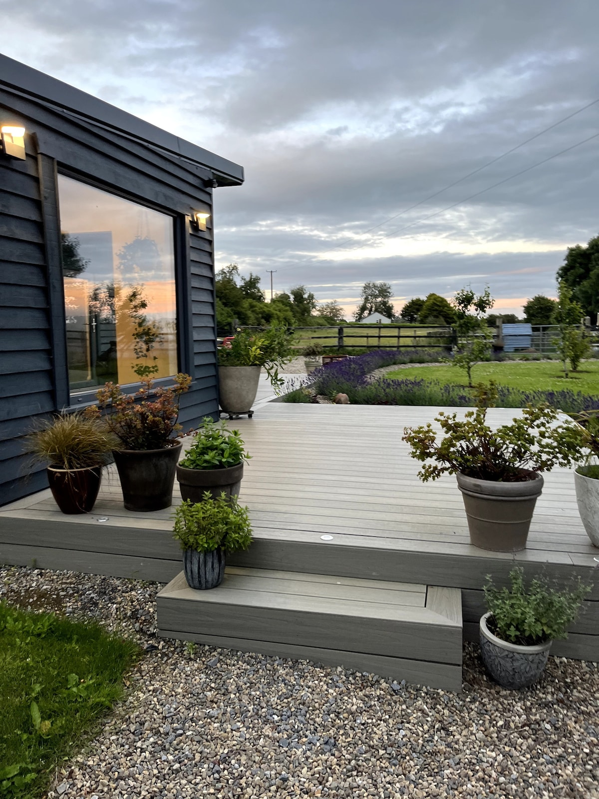 Enjoy the peace and tranquility of a rural setting, 5 mins drive from Galway Bay Sailing Club and Renville Park and beaches. Close to the beautiful villages of Clarinbridge and Oranmore. Ideal location to visit The Burren, Galway City (30 mins) Galway Racecourse (15 mins) and Connemara. The large decking area is surrounded by lovely gardens and there is a polytunnel where guests can avail of seasonal veg. Convenient to the main Galway and Clare road yet located in a tranquil setting.
