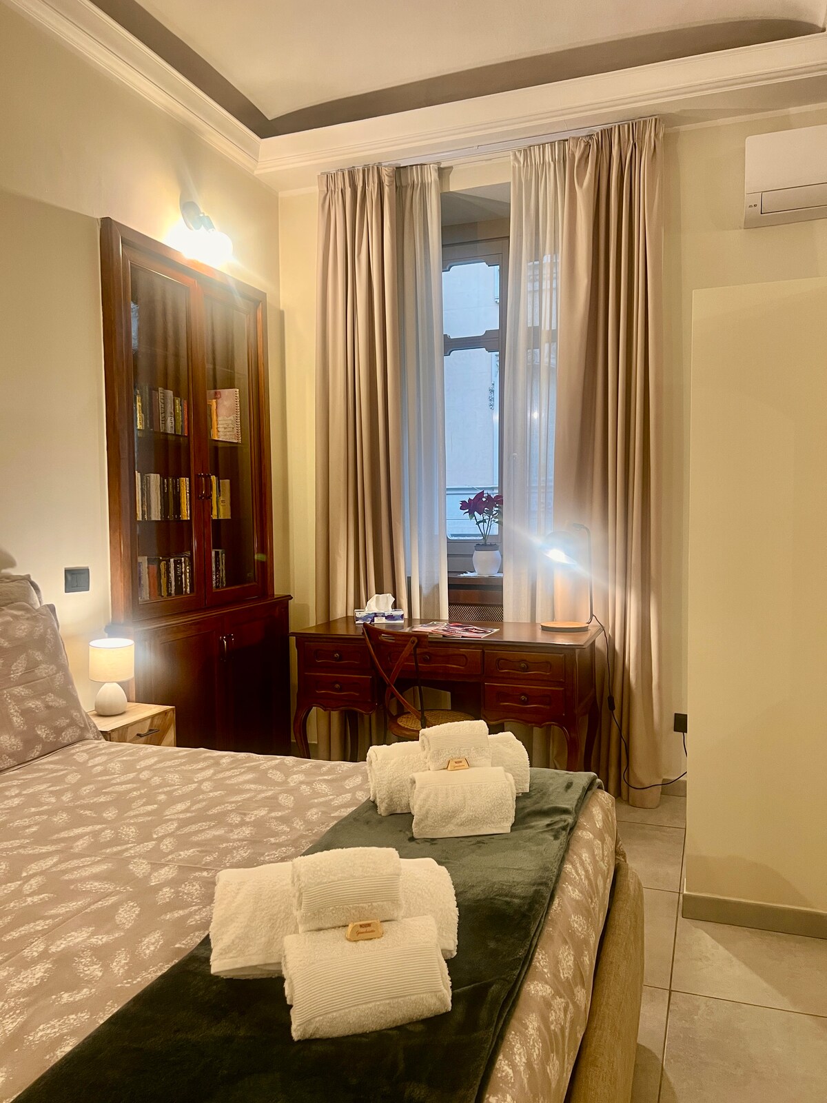 Re Umberto Suite is an elegant studio apartment in the heart of Turin. The studio harmoniously integrates all modern comforts (air conditioning, wifi with super fast fiber, etc.) with the atmosphere of the Turin aristocratic tradition. It will transport you into another era! Until 1700, Re Umberto Suite was the living room of a noble villa that over the centuries has turned into an elegant period condominium. New triple glazed windows have been fitted since May 2025!