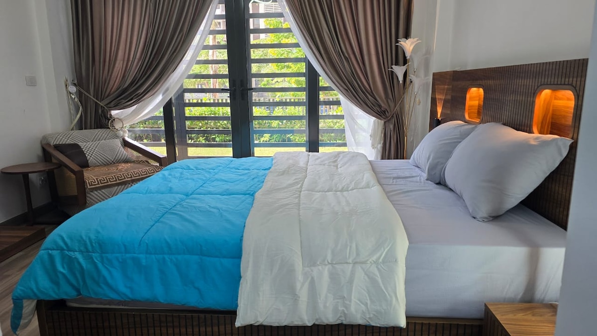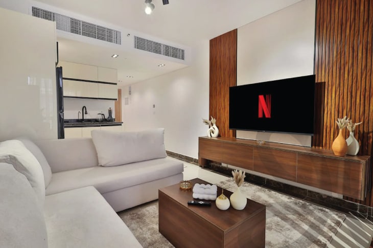This spacious apartment is fully furnished and equipped with everything you need for a comfortable stay. Relax and watch your favorite movies and TV shows on the sound system with access to Netflix, beIN Sports, Shahid, Watch it, and Starzplay. Located in a central location, close to all the major attractions. Just a short walk for bus station , the shops, and the restaurants. Whether you're traveling for business or pleasure, this modern, stylish apartment is the perfect place to stay.