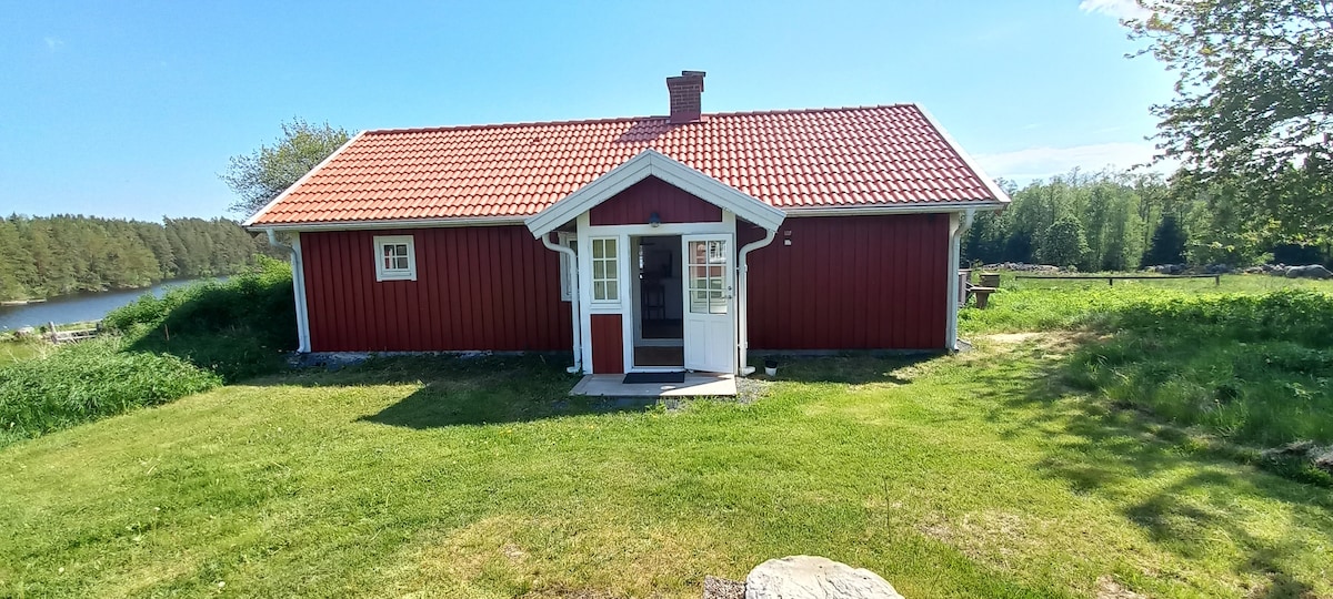 Mysig timmerstuga vid sjön Sommen. Utmärkt för er som vill komma ut till det stillsamma och varva ner från vardagsstressen. Lugnt läge med den vilda naturen runt omkring er. 150 meter bakom stugan finns grillplats och vacker vy över sjön Sommen. Fina skogsområden med promenadstråk och vandringsleder för svamp- och bärplockning. Stor chans att få se mycket vilt som rådjur, älg, räv och även Havsörn. 500 meter promenadstig till ångbåtshamn, badplats och fiske.