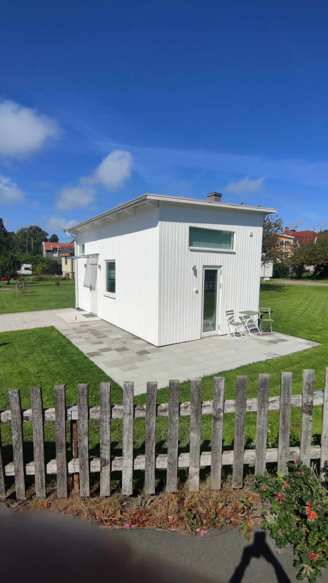 Attefallshus på ca 30 kvm inklusive loft. Fullutrustat kök med diskmaskin, kyl & frys, micro, ugn, kaffebryggare etc. Luftvärmepump med värme/kyla Wi-fi 100/100 mbit. Smart-TV, Apple-TV samt SONOS. Helkaklat badrum med golvvärme, dusch, kombinerad tvätt/tork. 160 cm säng på loft, bäddsoffa 120 cm. Bord + stolar. Smartlås med kod för öppna/stänga Det tar ca 10-15 minuter att ta sig till Svenska Mässan, Scandinavium eller Liseberg. Till Liseberg är det exakt 1000 meter promenadvägen.