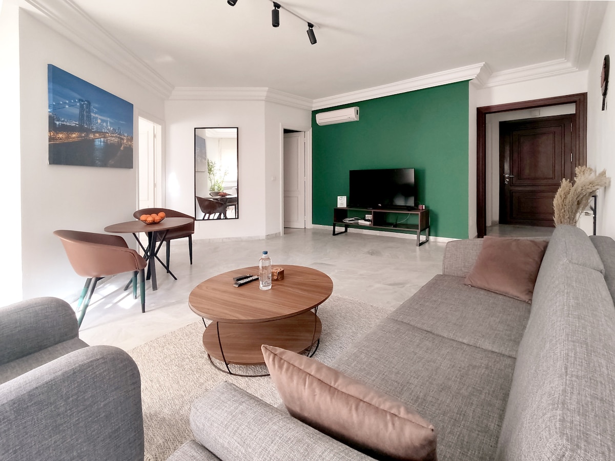 Appartement confortable à deux pas de Carthage, à 8 min de Sidi Bou Saïd et La Marsa, et à 18 min de l’aéroport. Style épuré, cuisine entièrement équipée, Wi-Fi rapide, ambiance chaleureuse et espaces pensés pour le télétravail, les vacances ou les séjours prolongés. Emplacement pratique pour explorer la région en toute simplicité. Vous serez accueillis par des hôtes passionnés, attentifs à votre confort. Entre découvertes, repos et flexibilité, votre seul job : profiter d’un séjour inoubliable