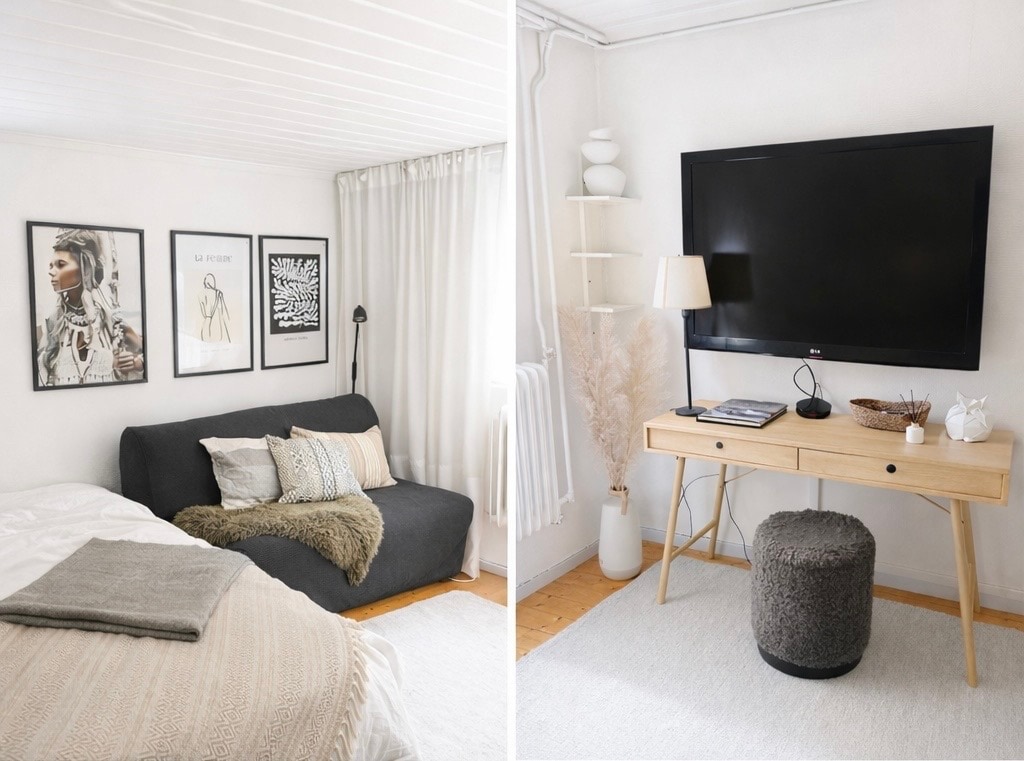 Nyrenoverat gästhus ca 40m2 golvyta, med de flesta bekvämligheter i ett hem. Närhet till vatten med en liten strand som vintertid är ett populärt promenadstråk. Relativt centralt och nära till buss eller tåg. Gästhuset är beläget på samma tomt som Värdfamiljens bostad. Ca 5min promenad till gym och pizzeria. 10min cykelfärd till mataffär, ca 15-20min med cykel till stan. Parkeringsplats finns. Är ni fler än 2 personer finns ytterligare sovplatser att hyra mot avgift. Obs golvkallt vintertid