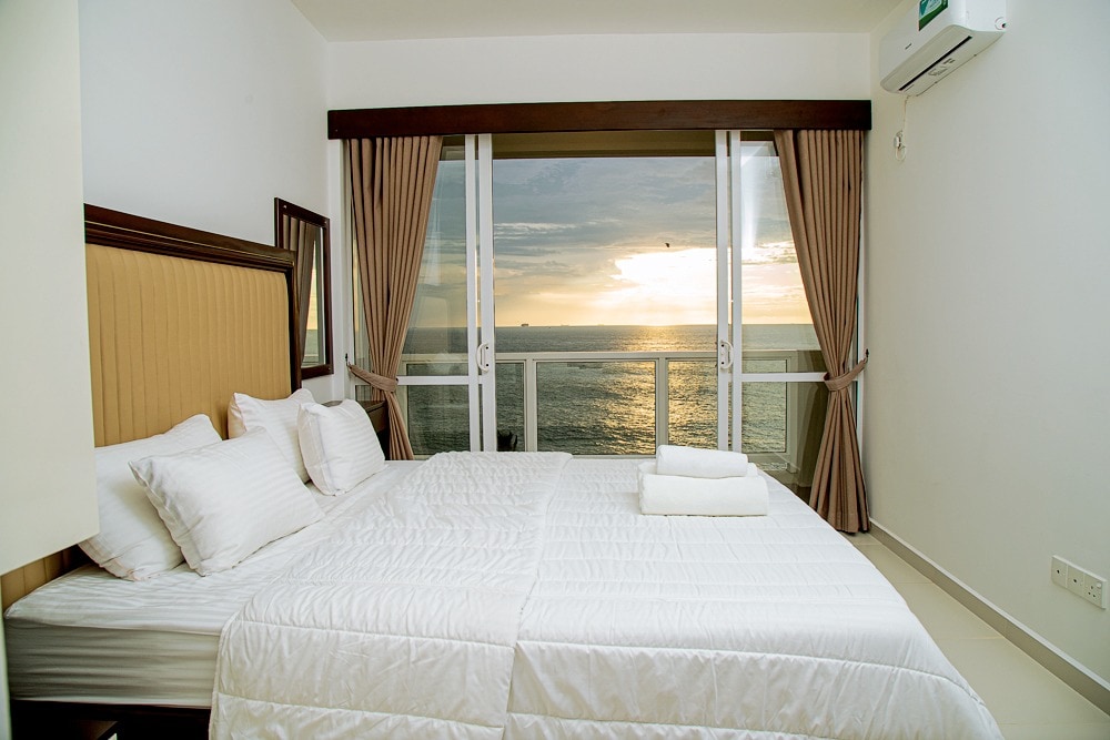 Welcome to our cozy, peaceful beachfront apartment nestled along the pristine coastline of Sri Lanka! As you step onto the private balcony or onto the beach below, you'll be greeted by breathtaking views of the shimmering ocean, the golden hues of the sunset, local boats, distant harbour, and glistening lights of the Colombo night skyline. In addition to the two-bedroom, two-bathroom apartment with full amenities and A/C, you will have access to the common fitness center and outdoor pool.