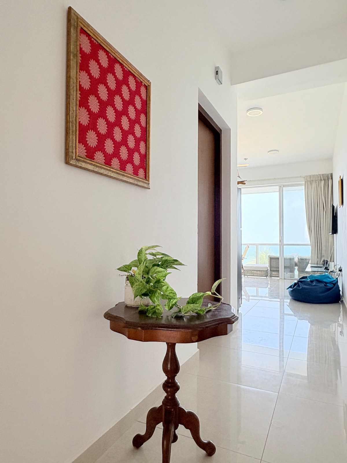 Space Private beach front views from the entire apartment with elegant interior to unwind and relax. Includes rooftop infinity pool, yoga deck and gym. Perfect place to getaway from the hustle and bustle or work remotely with high speed internet, fully equipped kitchen and luxury bedding Location Bandaranaike International Airport (Colombo) – 19 km | 20 min Colombo City – 14 km | 30 min Uswetakeiyawa Beach – 950 m | 2 min Negombo Hotel Road – 10 min drive Negombo Beach – 25 km | 44 min