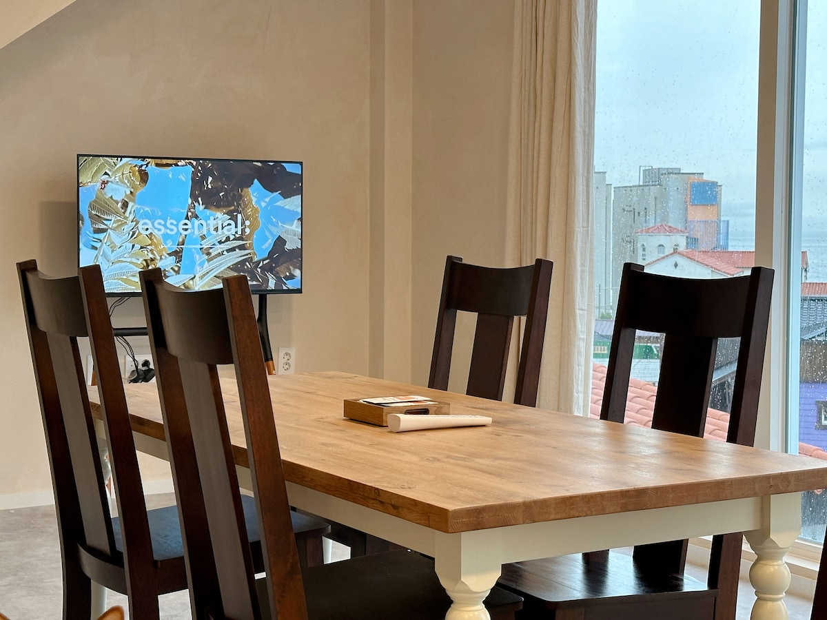 可以在三楼露台上看到大海,步行5分钟即可抵达朱전 蒙돌海水浴场。