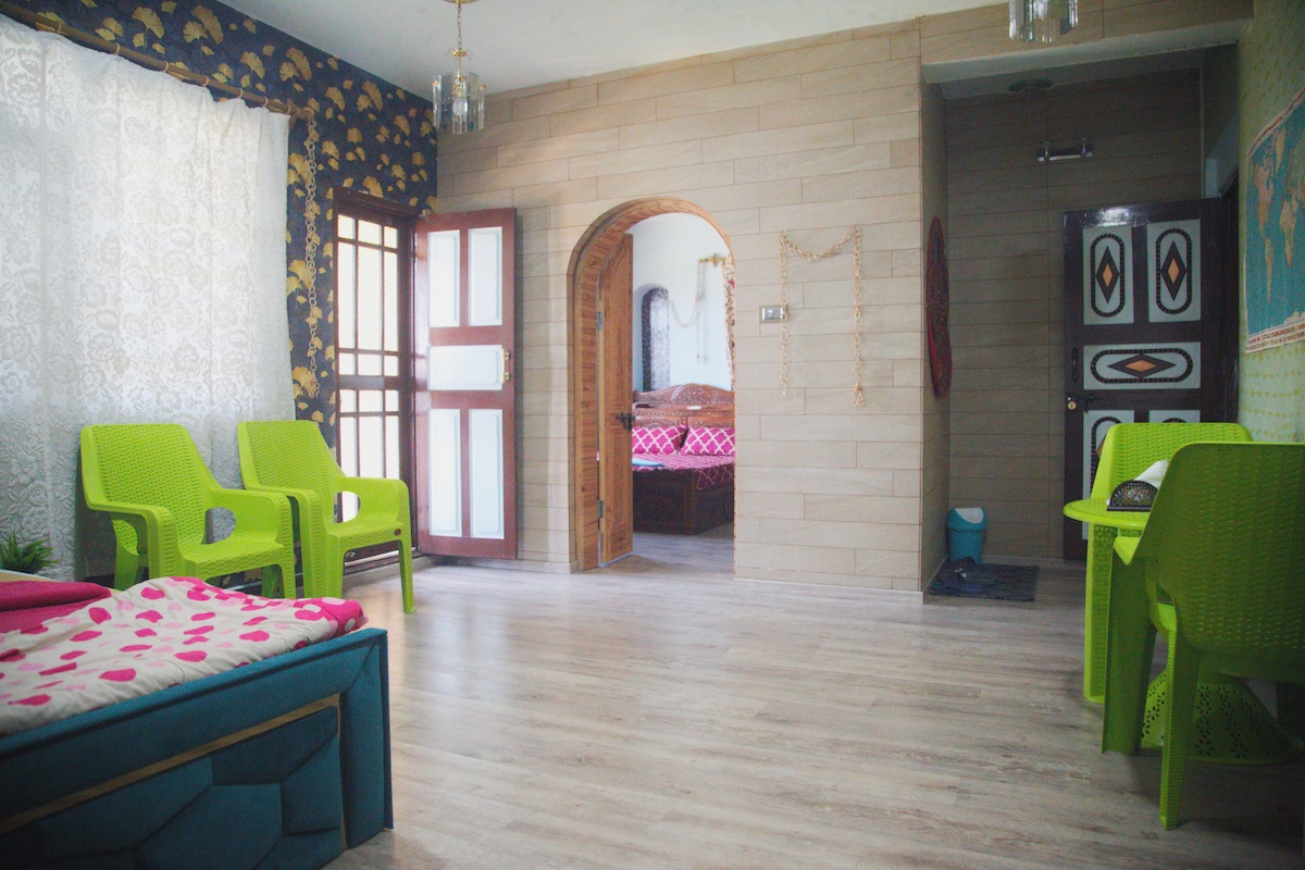 Enjoy breathtaking views of the Zabarwan Mountains from your private balcony. This spacious 3BHK (2000 sq. ft.) apartment can comfortably accommodate up to 10 guests. It features 3 bedrooms, 2 bathrooms, a drawing room, dining area, and a fully equipped kitchen with all the necessary utensils. Perfect for larger groups or families, this floor offers plenty of space to relax and enjoy the peaceful surroundings of Rajbagh. We also offer homemade Kashmiri food, prepared by our experienced cook.