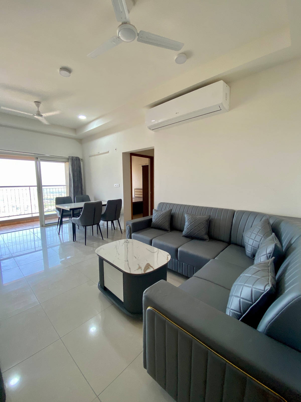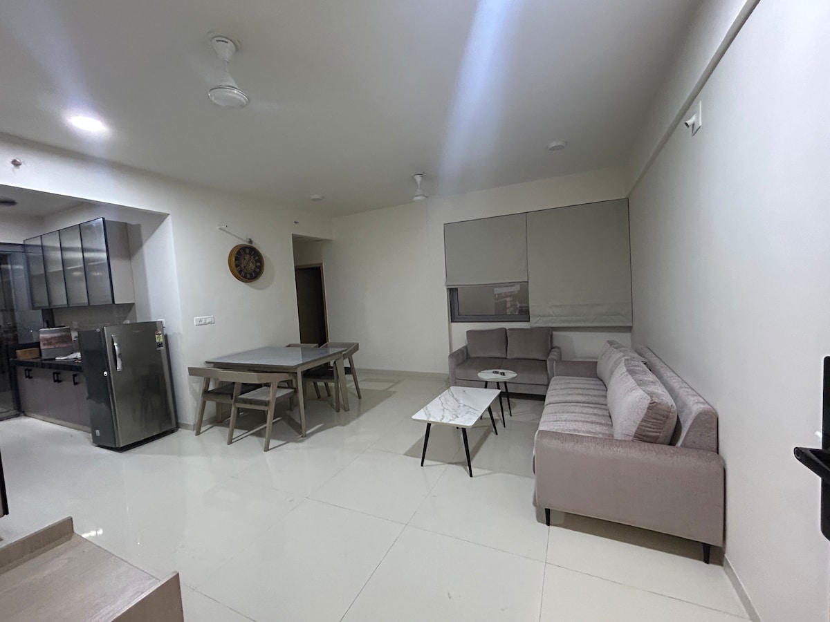 Welcome to your home away from home in the heart of GIFT City, Gandhinagar! This fully furnished, modern apartment offers a perfect blend of comfort, convenience, and style—ideal for both family vacations and corporate stays. Located in a safe and secure community, the space is thoughtfully designed to help you relax after a long day, whether you’re here for business or leisure.