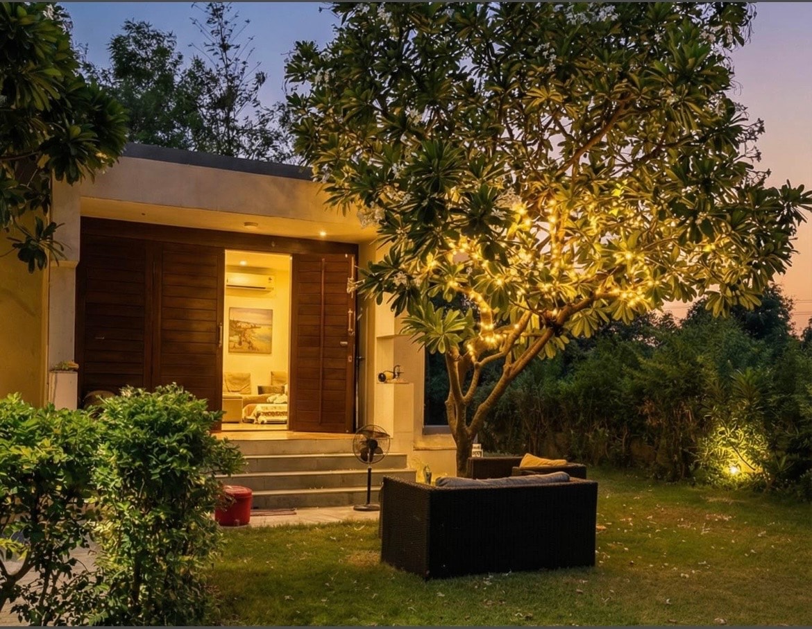 Enjoy the lovely and romantic villa just near by the city bring your friends loved ones and pets along and enjoy the wonderful vibe The villa has all amenities you need Sound system Projector Microwave Fridge Gas stove etc. The villa has a good size lawn(with outdoor sofa)beautiful night lighting and a lots of trees surrounded by nature You can also arrange group birthday parties( 10 to 15 ppl) engagement functions etc We have a good size bedroom and a big size hall for 15 ppl both have ac