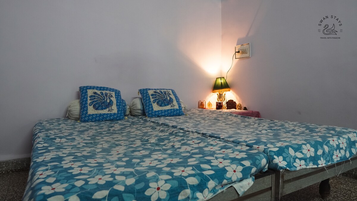 🛕🏡🚜 Nestled in the heart of BHAT village, our home is surrounded by a friendly neighborhood 🏘️ and a serene temple 🕉️, offering a true slice of village life. Located on the first floor, it blends rustic charm 🪵 with modern touches 🏡. My family lives on the ground floor, ensuring a warm, welcoming stay. Guests can access a peaceful backyard 🌿 and a terrace 🌌 with optional outdoor seating, perfect for a tranquil retreat.