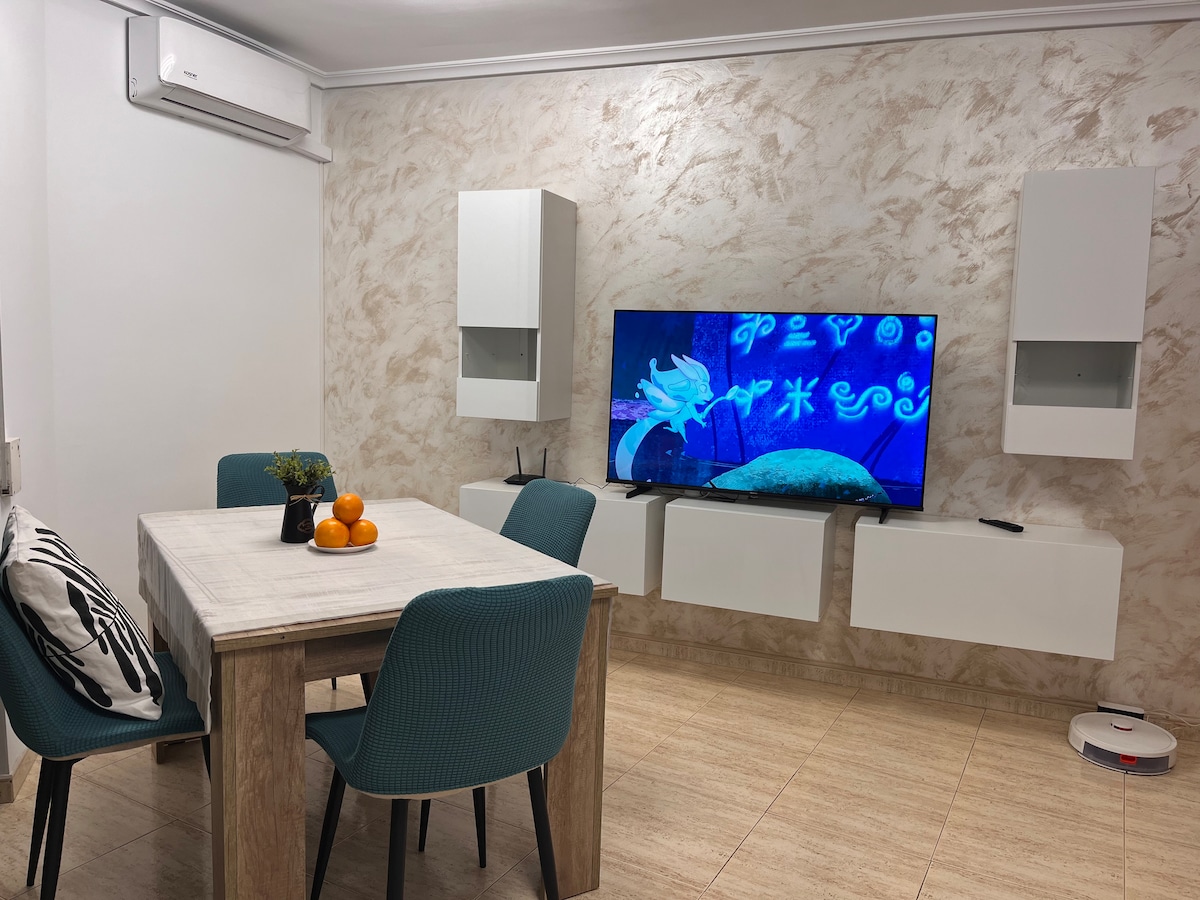 Read the house rules and ask before booking. If there's a disturbance between 10 p.m. and 8 a.m., the community will call the police and cancel the reservation. Simple apartment close to everything: Mercadona, health center, bars, pharmacy, train station, taxi, bus, banks, and prepared meals. 2 minutes from the port and 13 minutes from the beach (1.1 km). Nightclubs are 1-2 km away. Air conditioning, 300MB Wi-Fi, Smart TV, and Netflix. All guests will be asked for ID before entering.