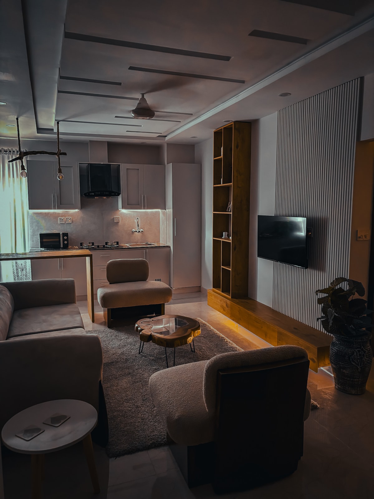 Step into Aurora Retreat, a stylish 1BHK in Islamabad’s prime. Located in the centre of Islamabad, enjoy a spacious bedroom, cozy lounge with Smart TV, fully equipped kitchen, modern bathroom, high-speed WiFi, lift, and secure parking. Perfect for solo travelers, couples, or business visitors seeking comfort and peace near top restaurants and transport. Book now for a premium, relaxing stay!