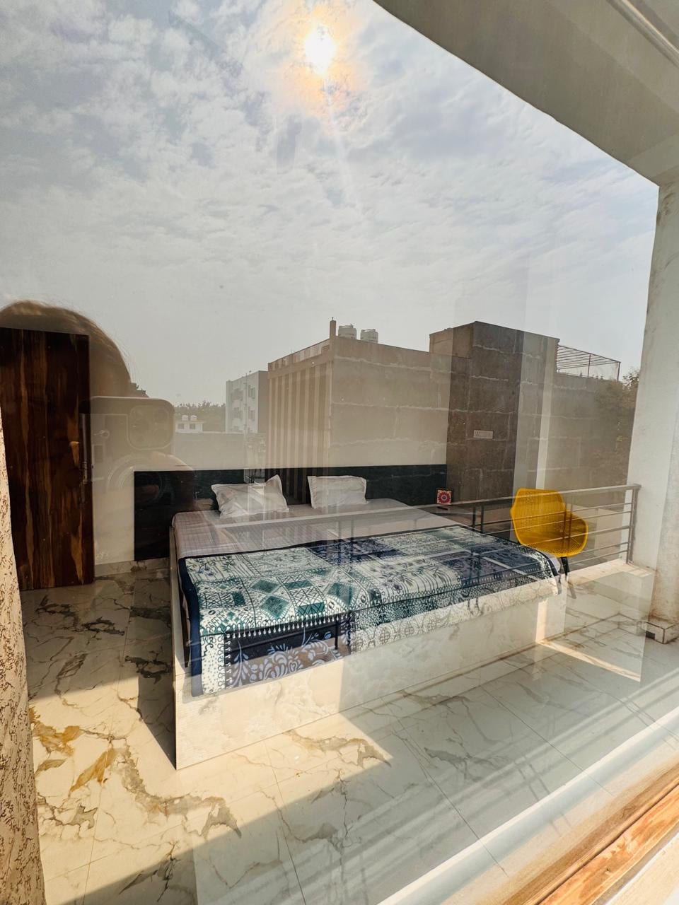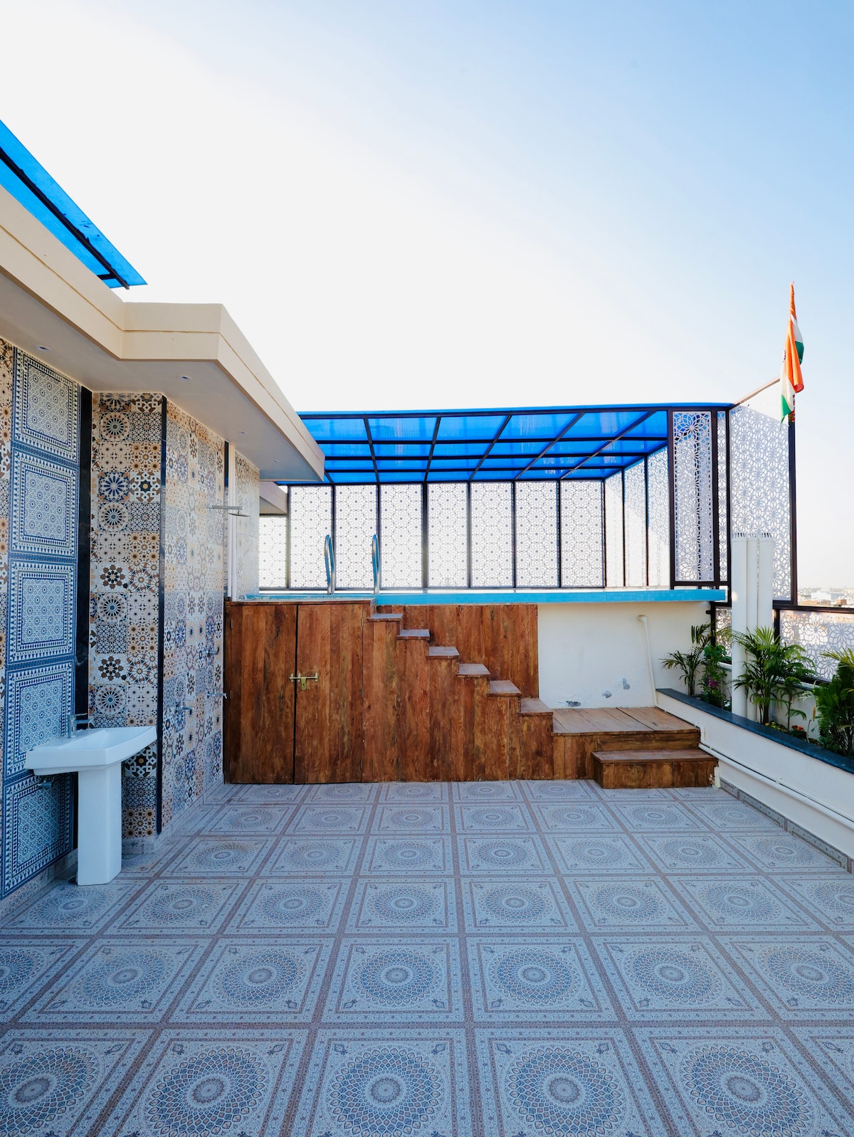 Experience this truly one-of-a-kind penthouse in the holy city, Benares! The house boasts stunning architecture and aesthetic interior finishing creating an amalgamation of colors from Greece and inspiration from the Ghats of Benares. The terrace is designed and illuminated keeping in mind the social media and photography enthusiasts. What’s more? It has an original boat from the Ganges, so you can enjoy the view and relax while listening to the water from the hand crafted bamboo fountain.