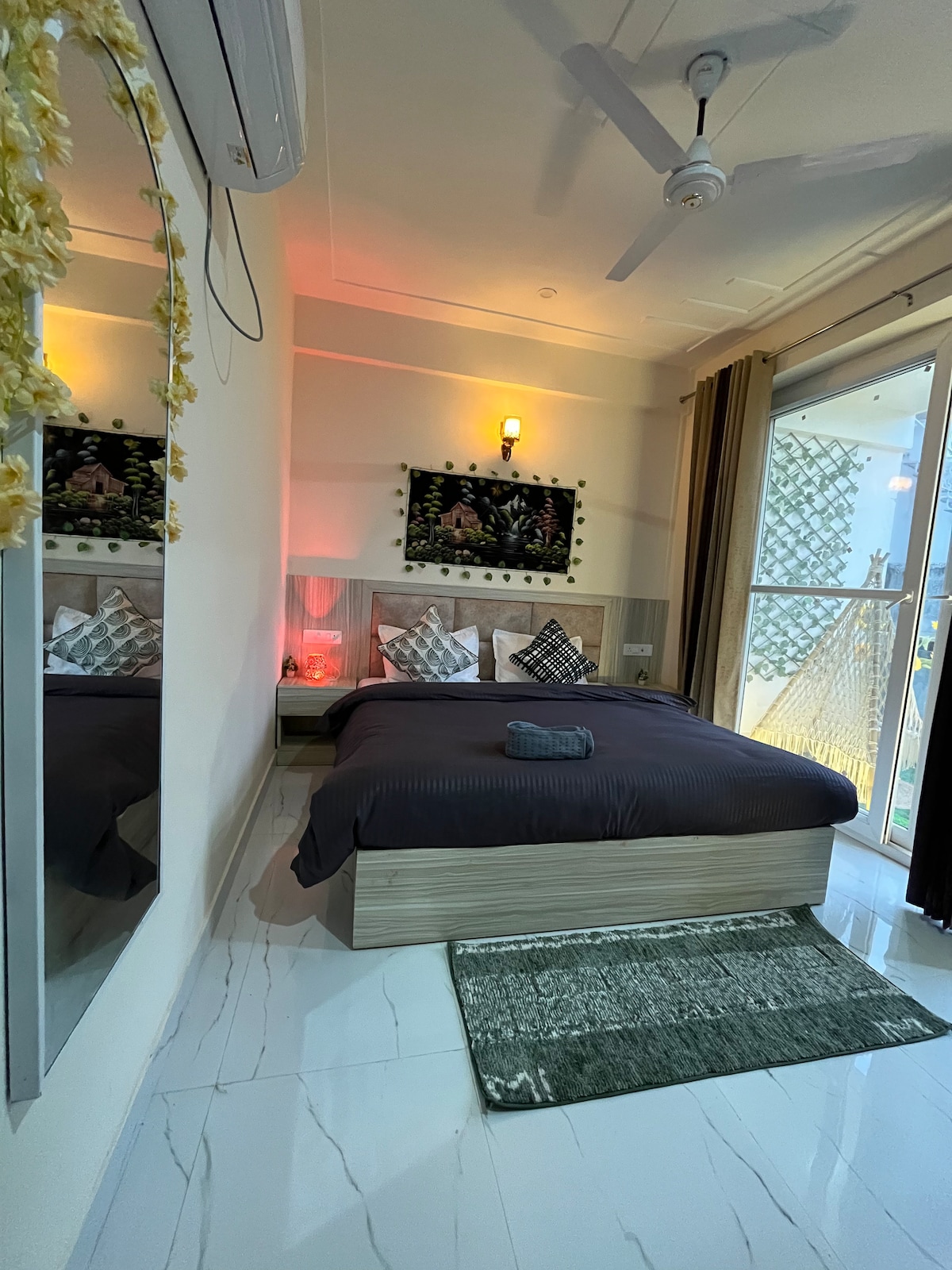 Step into a sanctuary where modern comfort meets the serene spirit of the Ganga. Nestled just steps away from the river, this stylish and calming retreat is designed for travelers who seek peace, rejuvenation, and a touch of luxury. Wake up to soft sunlight filtering through large windows, enjoy your morning chai on a private balcony with fresh river breezes, and unwind in thoughtfully curated interiors that bring together elegance, comfort, and nature.