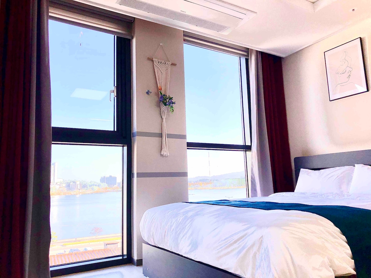 #1 25楼/退房:12点/速海5分钟/蓝色天空角落房/窗户开启/速海岛.蔚山巴威.清草湖景/Netflix
