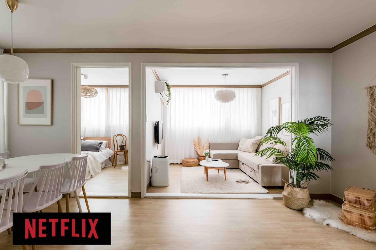 圣水区/3间客房/4张床/1楼,机场巴士4分钟,汉江步行5分钟/Netflix