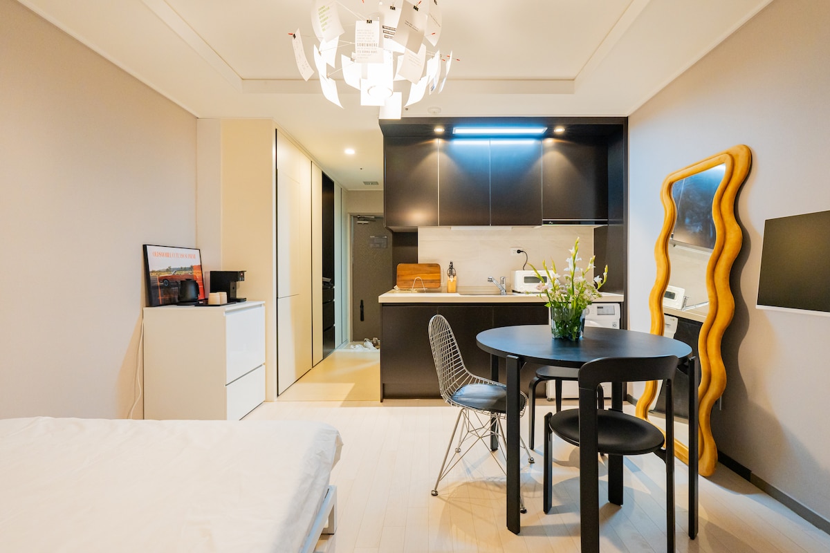 # 중심부에 자리하여 입지적 편리함과 세련된 스타일을 모두 갖춘 공간입니다. ^^경포&주문진&초당 차로10분거리 이용용이. ^^ 연인. 친구. 4인가족. 부부동반.(유아. 어린이) 머무르기에 접합한 조용하고 깨끗하고 세련된 숙소. # 해당 숙박료는 4인 기준 금액입니다. # 투숙 정원은 4인이며 최대 6인 까지 가능합니다. (4인 초과시 1인당 2만원 추가 금액 발생) ** 반드시 미리 말씀해 주세요 . #. 예약인원과 입실 인원이 다를경우 입실이 어려우니 불이익 없으시길 협조 부탁드립니다. 추가인원이 있으실 경우 미리 말씀해 주셔야 침구류가 준비됩니다 옥상 인피니티풀은 여름 시즌만 유료 운영 됩니다.
