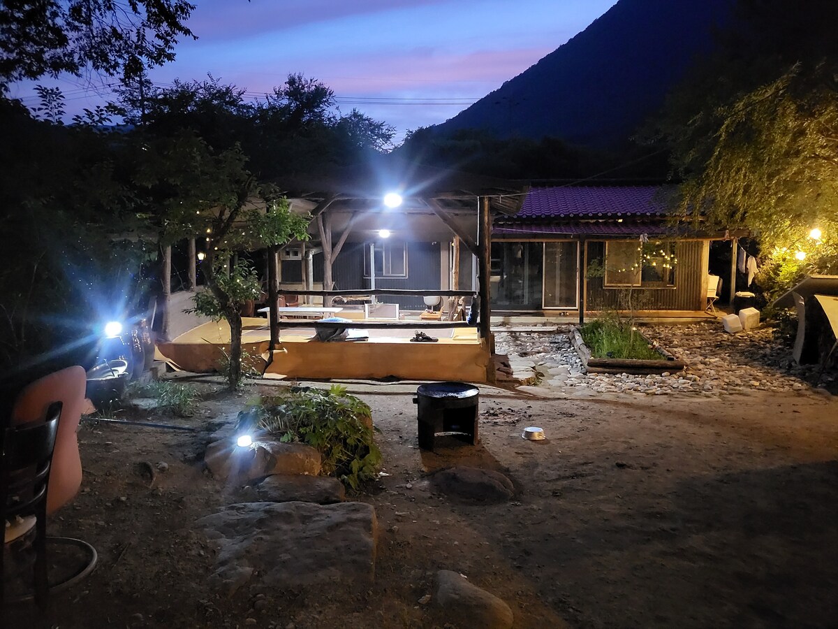 산멍, 하늘멍, 별멍, 불멍... 아무것도 하지 않고 멍하니 있어도 충분한 곳. 공해와 소음 없는 곳에서 맑은 공기, 탁트인 경치 만끽하실 분을 하루에 한팀만 모십니다. 여름엔 유기농 채소, 겨울엔 원적외선 나오는 친환경 구들방을 체험할 수 있고, 욕실 딸린 원룸과 함께 뒷마당 파티오를 단독으로 사용합니다. - 바베큐 비용은 2만원이며 소금, 후추, 바베큐 도구를 제공합니다. 불멍 공간 사용은 무료이니 이용 후 깨끗이 정리해 주세요(장작은 외부 구입, 바베큐 그릴에선 장작불 금지). - 이곳은 해발 700m로 평지보다 기온이 낮으므로 따뜻한 외투 꼭 챙겨오세요. - 자연 속 공간이므로 내외부에 곤충이 보일 수 있습니다. 예약 시 참고하세요. - 폭설이 올 땐 2륜 승용차는 올라오지 못할 수 있습니다. 그럴 땐 저희 차로 이동 도와드립니다.