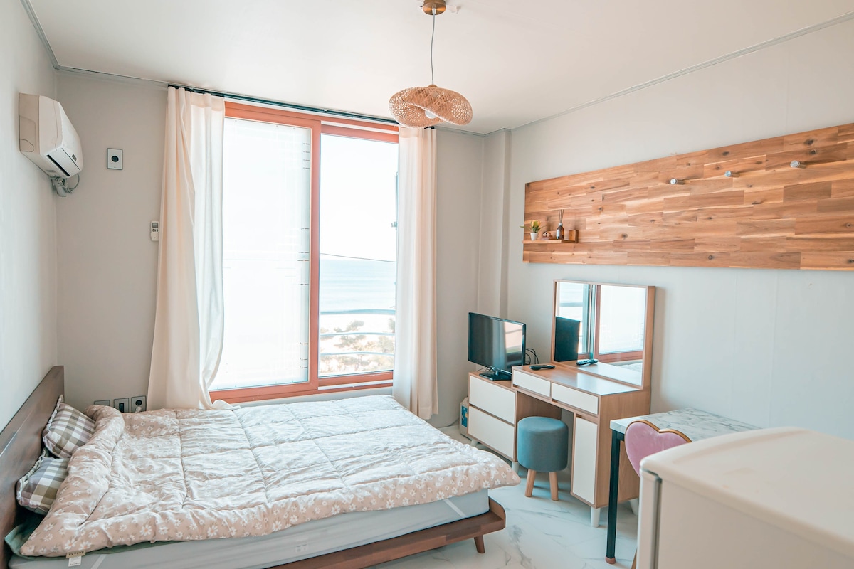 안녕하세요. 저희는 다양한 휴식 공간을 연구하고 제공하는 ONDA입니다. 이 곳에서 머무르실 모든 분들께서 편안하고 행복한 시간을 보내기를 바랍니다. [숙소 소개] 서핑을 즐기실 수 있는 금진해변 앞에 위치한 숙소입니다. [객실 유형] 원룸형(퀸1+주방+화장실1)