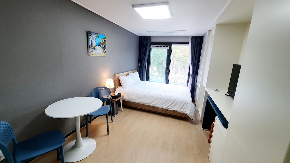 깔끔하고 아늑한 인테리어, 고층과는 다른 중층만의 시야가 꽉찬 환상적인 바다와 모래 해변, 파노라마 파도뷰로 온 마음을 힐링할 수 있는 매력적인 숙소입니다. 🏖🏝🌊 서핑들의 성지 양양 죽도해변, 인구해변과 이어져 있으며 데크길 따라 산책하다보면 양리단길 도착~!🛤 또한 발코니를 통해 동해의 장관, 일출을 숙소에서 감상하세요.🌅🌌 발코니에 등기대고 앉아 커피 한 잔의 여유도 좋답니다. 여기야말로 진정한 커피 맛집👍☕️☕️☕️ 양양 종합여객터미널에서 22분, 강릉 시외버스터미널에서 37분 거리에 위치하고 있습니다. 편안함과 안락함을 선사하는 객실로 더블베드로 구성되어 있습니다. ▶비대면 체크인(숙소의 키패드 번호 입력하여 입실 가능) ▶전문 세탁소에서 고온 살균된 침구 제공 ▶소독제, 살포를 통한 객실 소독, 방역 ▶취사 가능(냄비, 프라이팬 등의 조리도구와 식기제공) ▶넷플릭스(본인 계정으로 로그인하여 시청) ▶메세지 응답 시간 : 오전 09:00~오후 11:00