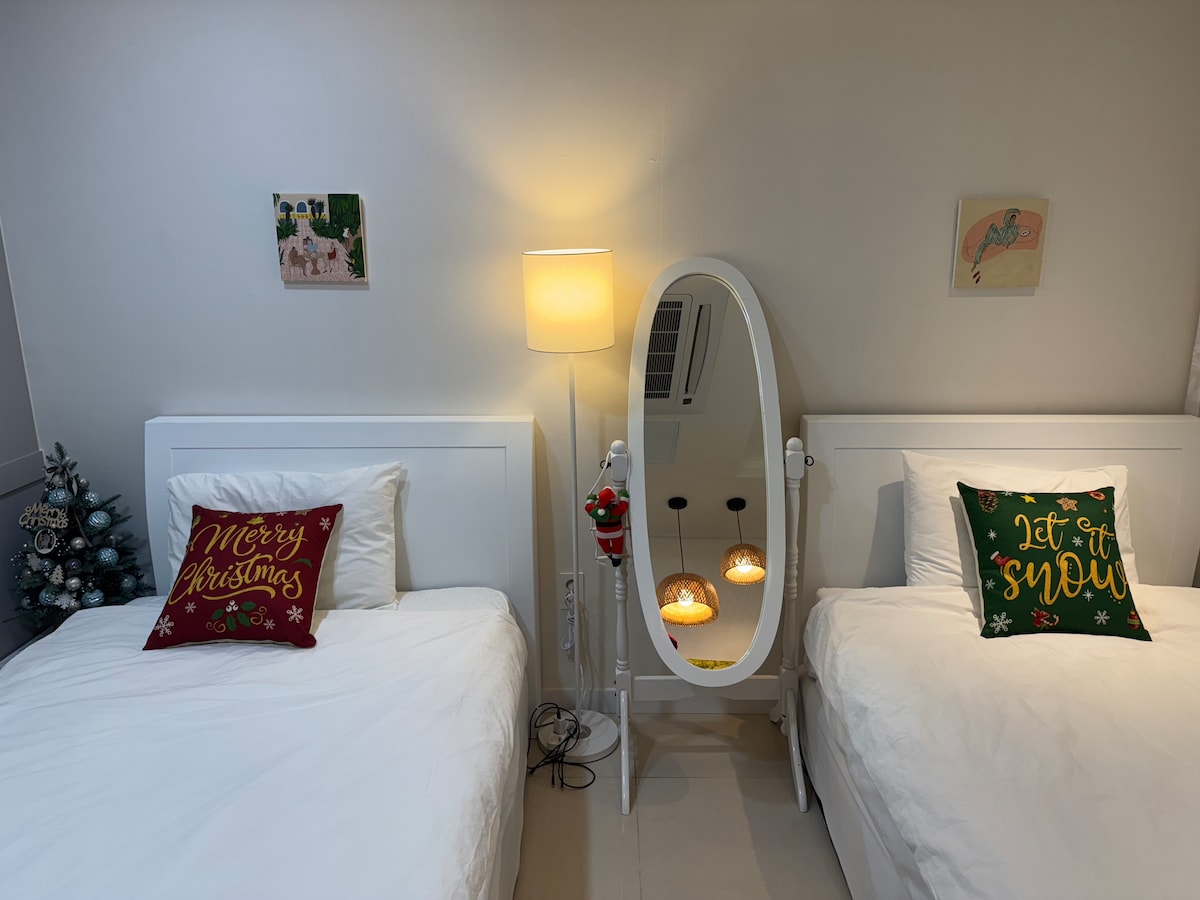 云朵屋 【开业】# 7分钟步行至发山站#马谷购物#3张标准双人床#靠近金浦机场